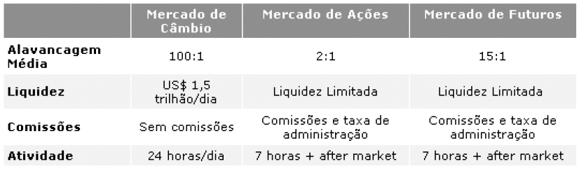 O mercado de divisas é denominado internacionalmente como FOREX (Foreign Exchange ou mercado de câmbio), onde através de uma rede interligada realizam-se operações de compra e venda de determinadas moedas de um país para outro.As grandes Instituições Bancárias e os Bancos Centrais realizam suas operações cambiais ocupando perante o mercado Financeiro Mundial uma posição de destaque, incrementando crescimento médio de 25% ao ano.